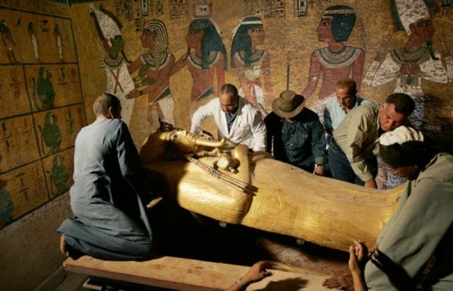 Эрамиздан аввалги 1332-1323 йилларда ҳукмронлик қилган Тутанхамоннинг дафн маросимида ишлатилган олтин ниқоб Шохлар водийсида   тадқиқот ишларини олиб бораётган британиялик олим Ховард Картер томонидан 1922 йилда топилган эди. Ниқоб олтин ва лазуритдан ишланган бўлиб, 19-ёшли фирьавннинг юзини акс эттириши айтилади.