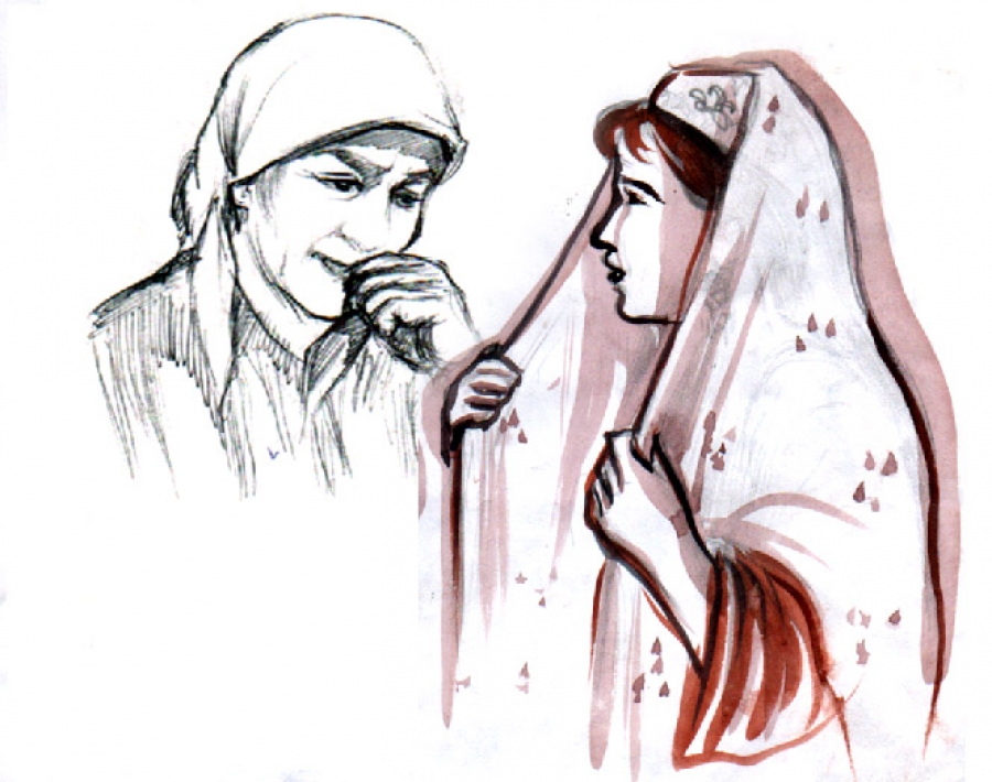 Куёвини кўрди-ю, унинг маъюс чеҳрасига боқиб, унсиз йиғлади: