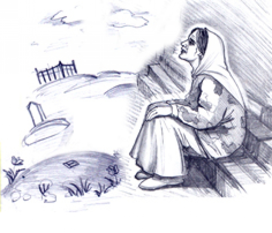 Аёллар қизчанинг устидаги кийимини ювиб-қуритиб, кийдиришади-да, юзига бир парча оқ мато ёпиб, кўмишга тайёрлашади. Қабр қазишнинг иложи бўлмагач, уруш туфайли ёпилган болалар боғчасининг     ялангдаги ўчоғи ичига кўмишади. Бу кун онаизорнинг кўзида бир умр муҳрланиб қолади...