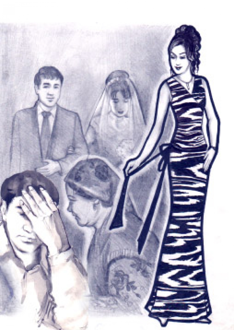 ...Унаштирувдан кейин эрталаблари қизи ясан-тусан, пардоз-андоз қилиб уйдан чиқиб кетаётганига бир-икки кўзи тушган эди. "Ҳадеб унаштирилган йигит билан учрашиши яхши эмас" деб ичида ғашлангандию,  қизига ҳам, хотинига ҳам индамаганди. Никоҳ базмида ўшанда қизидан қаерга кетаётганини сўраб-суриштирмагани учун пушаймон қилди. Базм ўртасига бориб тўйхонада чироқлар ўчди. Ҳайрон бўлиб, сабабини билиш учун тўйхона маъмуриятига учрамоқчи бўлганди, хотини кулиб қайтарди: