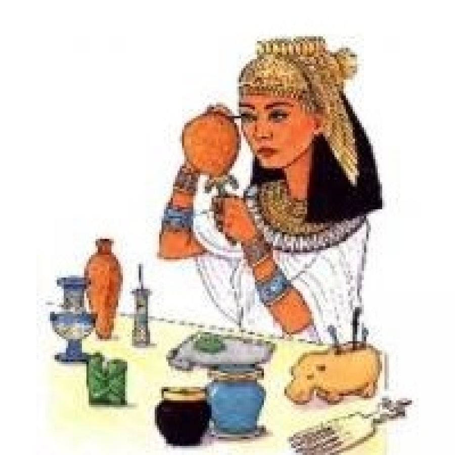 Косметикани аёллар кашф қилган, деб ҳисоблашга асос бор. Улар доривор ўсимликлар: хна, басма, пушти-қизил бўёқ, сурма, тилла фольга ва гелийни аёллар мулкига айлантиришган. Хна билан сочни бўяшган, тирноқ учун басма(сочга ҳам) бўёқ бўлган, сурмани табиий олтингугуртли минерални куйдириб олишган.